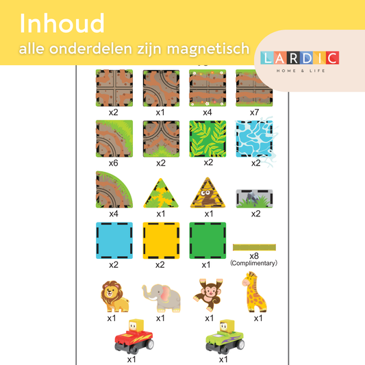 Lardic Magnetisch Speelgoed Dierentuin Racebaan - Magnetic Tiles - Bouwspeelgoed - Bouwblokken - Magna - Magneten Speelgoed - Magnetische Tegels - Bouwstenen - Montessori Speelgoed - Mind Educatief Speelgoed - Jongens & Meisjes