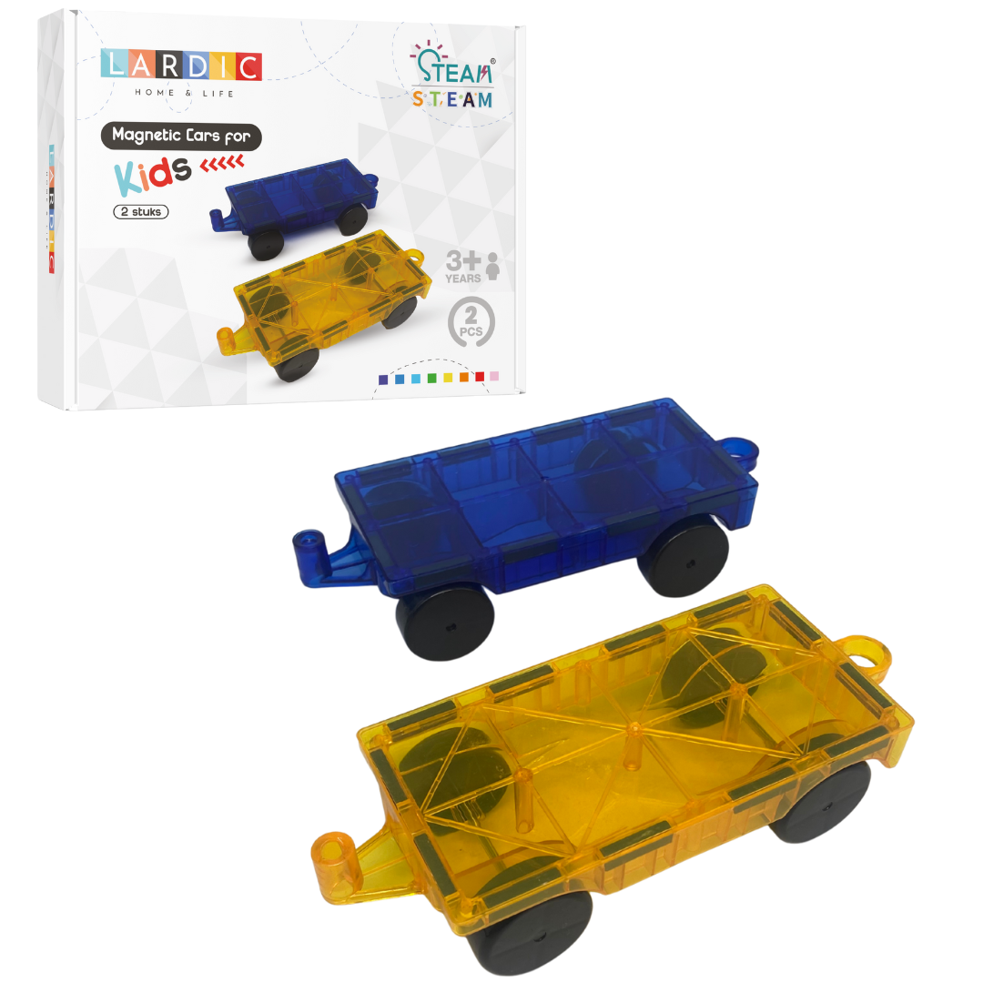Lardic - Magnetisch Speelgoed - 2 auto's uitbreidingsset - Magnetic Tiles - Bouwspeelgoed - Magnetische Tegels - Montessori Speelgoed - Educatief Constructie Speelgoed