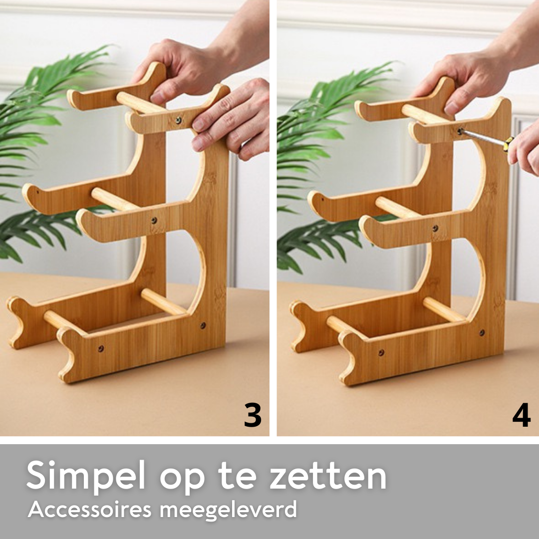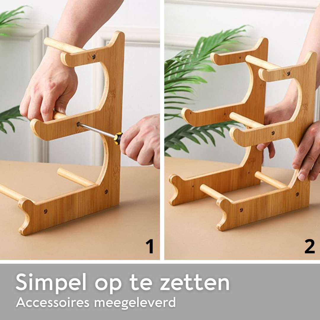 Lardic® Fruitschaal 3 Laags - Serveertoren - Fruit Etagère - Fruitmand Keramiek - Groentemand - Bamboe Hout - Opberger - Porselein - Groen